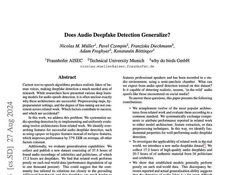 Spectral envelope (timbre) & vocal tract characteristicsCaptures the overall shape of the speech spectrum related to the vocal tract. Useful for spotting unnatural timbral patterns or over-smoothed characteristics that can appear in synthetic or cloned voices.